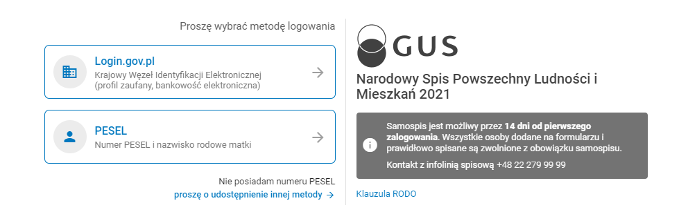 Do formularza spisowego można zalogować się na przykład: